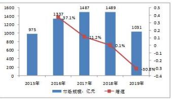 2019年中國新能源商用車行業市場規模為1031億元(不含政府補貼,下同),同比減少30.8%。2018年中國新能源商用車市場規模大約為1489億元,同比增長0.1%。