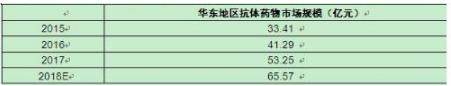 圖表:2015-2018年華東地區抗體藥物市場規模