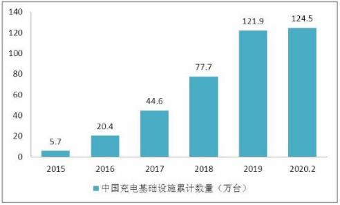 圖表:2015-2020年2月中國(guó)充電基礎(chǔ)設(shè)施累計(jì)數(shù)量(單位:萬(wàn)臺(tái))