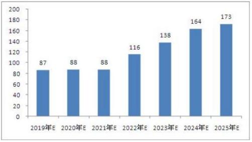 一般情況下,智慧旅游行業的工業產值與服務產值占比在1:3左右,因此通過2019-2025年行業總產值預測來估算出工業總產值。