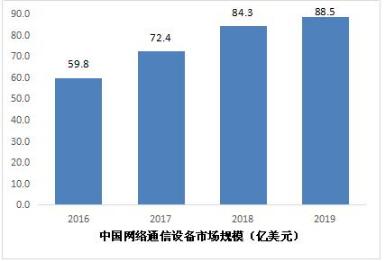 圖表:2016-2019年我國網絡通信設備市場規模