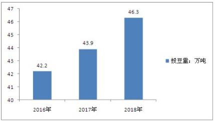 2018年國內豆制品行業50強生鮮豆制品投豆量規模約為46.3萬噸,同比增加月2.4萬噸。