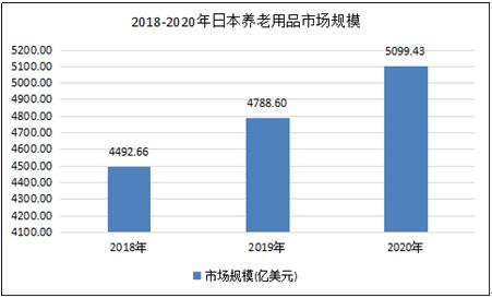 據數據顯示,2018年日本養老用品市場規模為4492.66億美元,2019年日本養老用品市場規模為4788.6億美元,2020年日本養老用品市場規模為5099.43億美元,同比增速為6.49%。