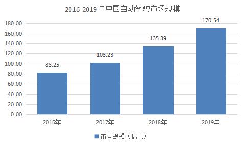 據數據顯示,2016年中國自動駕駛市場規模為83.25億元,2019年中國自動駕駛市場規模為170.54億元,同比增速25.96%。