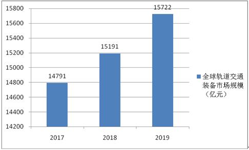 圖表:2017—2019年全球軌道交通裝備場規(guī)模(單位:億元)