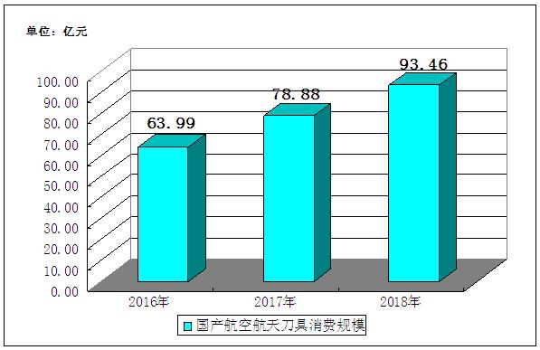 圖表:2016-2018年航空航天專用刀具行業(yè)市場(chǎng)國(guó)產(chǎn)刀具消費(fèi)規(guī)模