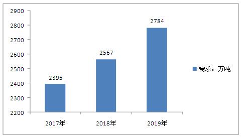 圖表:2017-2019年聚丙烯行業(yè)市場需求分析