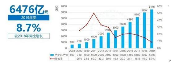 圖表:2008-2019年中國(guó)地理信息產(chǎn)業(yè)總產(chǎn)值