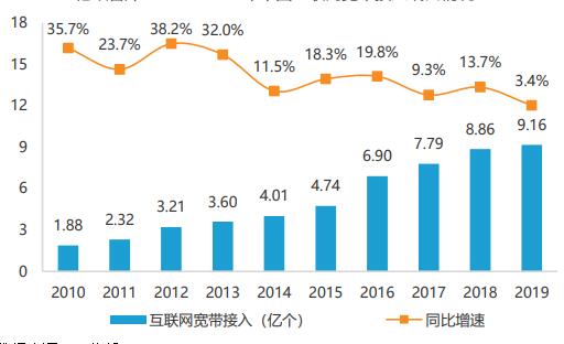 圖表:2012-2019年中國互聯網寬帶接入端口情況