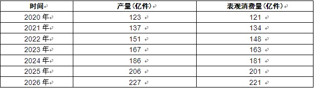 圖表:2020-2026年全球針灸針產量、表觀消費量
