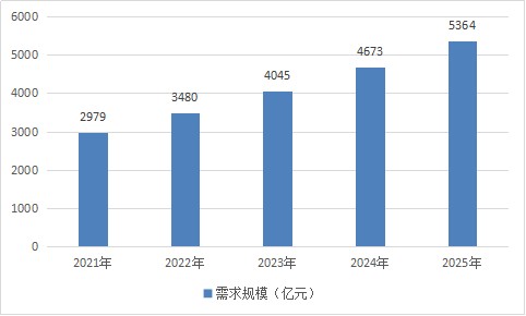 圖表:2021-2025年護膚品行業市場需求規模預測(億元)