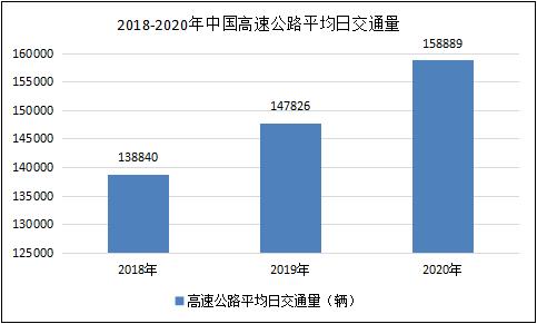 據數據顯示,2020年國家高速公路年平均日交通量為15889輛,我國高速公路年平均日交通量和日均行駛量均不斷增加,帶動高速公路的需求增長。