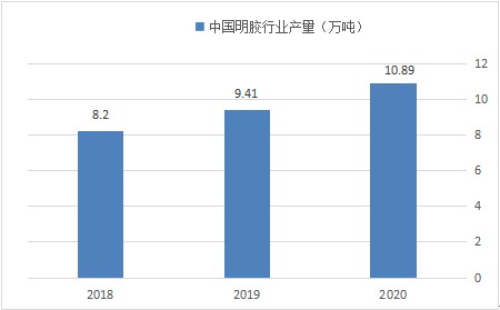 2018-2020年中國明膠行業供給規模呈現逐年上升的趨勢,2020年供給規模達10.89萬噸,主要因為生產工藝的改進及新進入企業的增加,推動產量的上漲。