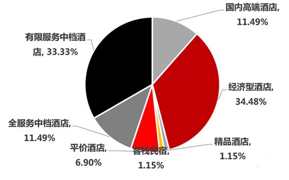 目前,我國仍以經濟型酒店為主,市場結構呈現“啞鈴狀”結構。隨著中國中產階級的消費升級,反映生活態度的個性化服務中檔酒店市場需求不斷增大,現有酒店供給結構與客群需求變化不匹配越來越突出,高端酒店市場仍有增長空間。