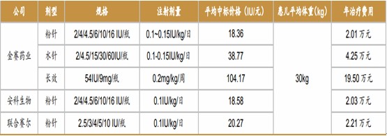 低端粉針:價格最低,2 萬左右的年均治療費用能為大多數矮小癥患兒家庭所接受,目前粉針市場主要由聯合賽爾、安科生物、LG和金賽藥業四家企業占據,四家市場份額合計達95%以上。在營銷策略方面,公司粉針主打價格低,沖擊競爭對手,為終端水針和高端長效水針放量保駕護航。