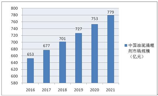 一、2016-2021年國內油泥清洗藥劑市場規模