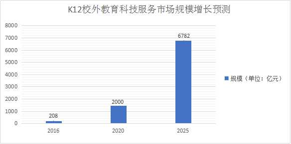 中國K12校外教育科技服務市場的總市場規模由2016年的208億元增加至2020年的1456億元,復合年增長率為62.7%。預計將于2025年的總市場規模進一步增加至6782億元,自2020年至2025年復合年增長率為36.0%。