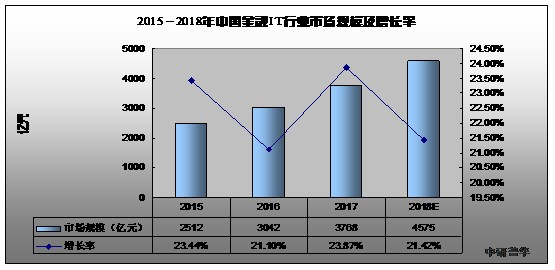 圖表:2015-2018年中國金融IT行業市場規模及增長率