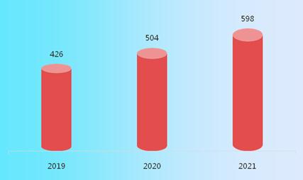 圖表:2019-2021年美白化妝品市場規模(億元)