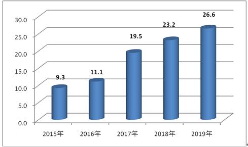 圖表:2015-2019年中國挖掘機行業產量(萬臺)