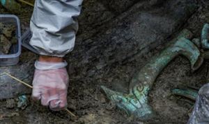 90后考古女孩自創(chuàng)圓規(guī)式起立除去最尋常的發(fā)掘工作外,三星堆鋼架玻璃工作艙的許多工作都需要維持跪趴姿勢,比如:拍攝...
