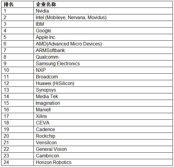 根據相關市場調研機構發布的榜單來看,前十依然是歐美韓日企業,國內芯片企業如華為海思、聯發科、Imagination、寒武紀、地平線機器人等企業進入該榜單,其中華為海思排12位,寒武紀排23位,地平線機器人排24位。