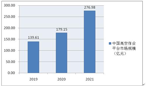 中國高空作業平臺市場仍處于成長期,低成本、高效率、安全作業保障是促使高空作業平臺在國內市場快速發展的三大驅動因素。根據相關數據,2019-2021年我國高空作業平臺行業市場規模如下圖所示: