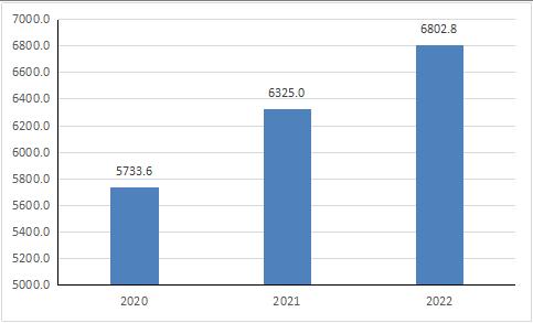 2020年市場需求量為6569.62億元,2021年為6695.94億元,同比增長1.92%,2022年則是為6519.32億元,同比下降2.63%,近三年來復合增長率為0.38%。