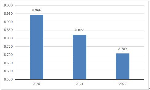 圖表:2020-2022年中國18-59歲人群數(shù)量(單位:億人)