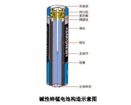 堿性鋅錳電池又稱為堿性電池、堿錳電池,其使用堿性電池專用電解二氧化錳等材料作為正極、鋅等材料作為負極、氫氧化鉀為電解質。