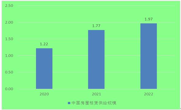 2020年中國房屋租賃市場供給規模達到了1.22萬億元,2022年達到了1.97萬億元,因為疫情的恢復,整體的供給依舊慢慢趨于增長狀態。