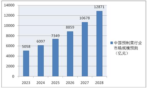 圖表:2023-2028年中國預制菜行業市場規模預測(單位:億元)