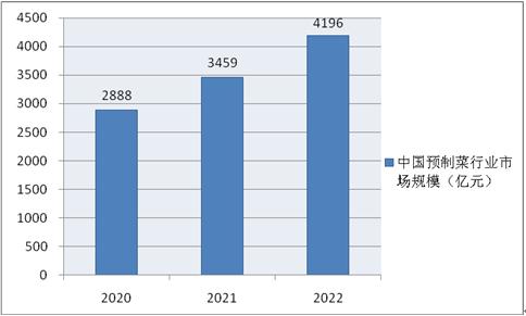 根據相關數據,2020-2022年中國預制菜行業的市場規模如下圖所示。預制菜在餐飲和居家消費的雙重推動下迎來行業風口。2022年中國預制菜市場規模為4196億元,同比增長21.3%。