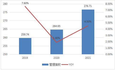 根據中國物業管理協會發布的《2021全國物業管理行業發展報告》,截止2021年末,全國物業管理面積約為276.71億平方米,2019年至2011年復合增長率約6.5%,行業整體管理規模持續擴大。同時,物業服務企業數量和從業人員數量也相應增加。截止2021年末,全國物業服務企業約11.4萬家,從業人員約901.2萬人,分別比2020年末增加約3.97%和8.90%。