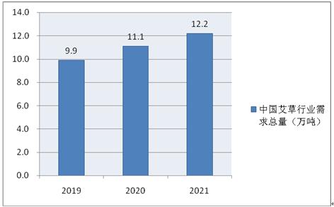 近五年來隨著艾草需求量大幅攀升,而艾葉野生資源產能有限,無法滿足日益增長的市場需求,我國艾草種植業逐漸興起,產品需求量保持穩定增長。根據相關數據,2021年行業需求規模達到約12.2萬噸的水平。