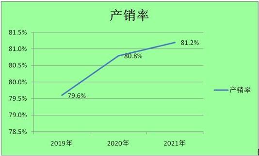 圖表:2019-2021年我國化妝品行業(yè)產(chǎn)銷率