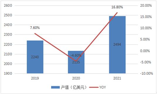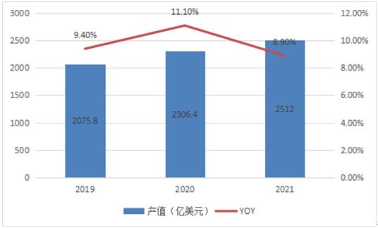 圖表:2019-2021年全球海產品加工業產值規模情況