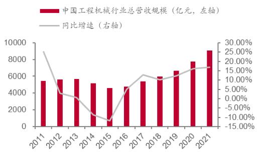 (3)2016-2021年,行業進入第二輪上升期,下游需求更加多元化,由“更新需求”+“新增需求”驅動,在國標切換、更新需求、基建逆周期調節、出口、新農村建設、機器替人等因素推動下,挖掘機行業復蘇,2021年銷量34.3萬臺;