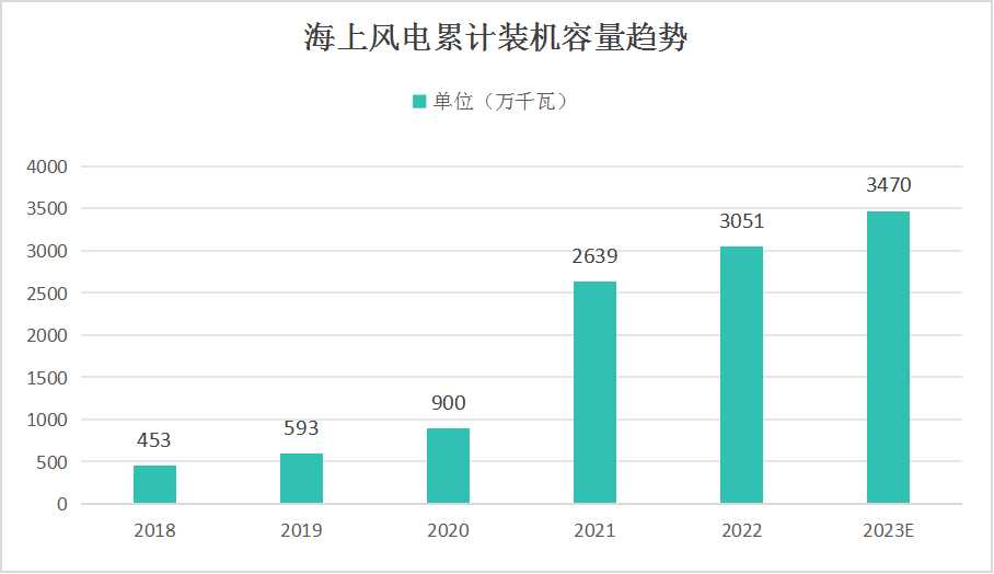 海上風(fēng)電具有資源豐富、發(fā)電利用小時數(shù)高、不占用土地、不消耗水資源和適宜大規(guī)模開發(fā)等特點,是未來新能源發(fā)展的重要方向之一。近年來,隨著技術(shù)的不斷進(jìn)步和成本的降低,海上風(fēng)電行業(yè)得到了快速發(fā)展,裝機容量持續(xù)增長,成為全球能源轉(zhuǎn)型的重要組成部分。