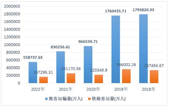 圖表:近年來我國旅客運輸量及鐵路客運量