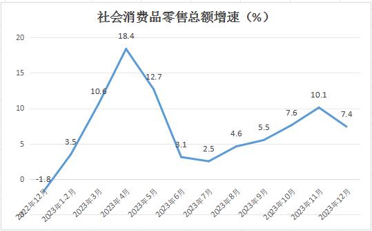 2023年12月社會消費品零售總額增速較前月有所回落,意味著2024年促進消費的壓力依然比較大,未來刺激內需的政策依然不能停。