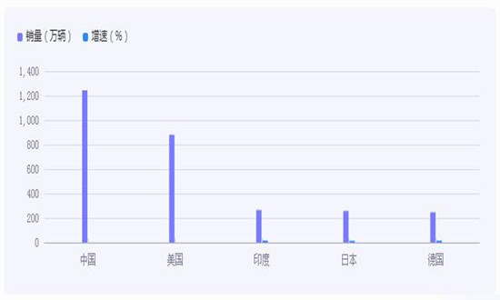 2023年上半年,全球的輕型車市場主要由五個國家主導(dǎo),它們分別是中國、美國、印度、日本和德國,約占全球市場銷量60%。在這五大市場中,中國的輕型車銷量達到了1,244萬輛,位居首位,其次為美國、印度和日本。從同比增速來看,印度、德國和日本分別位列前三,分別為14.9%,14.3%和13.4%。