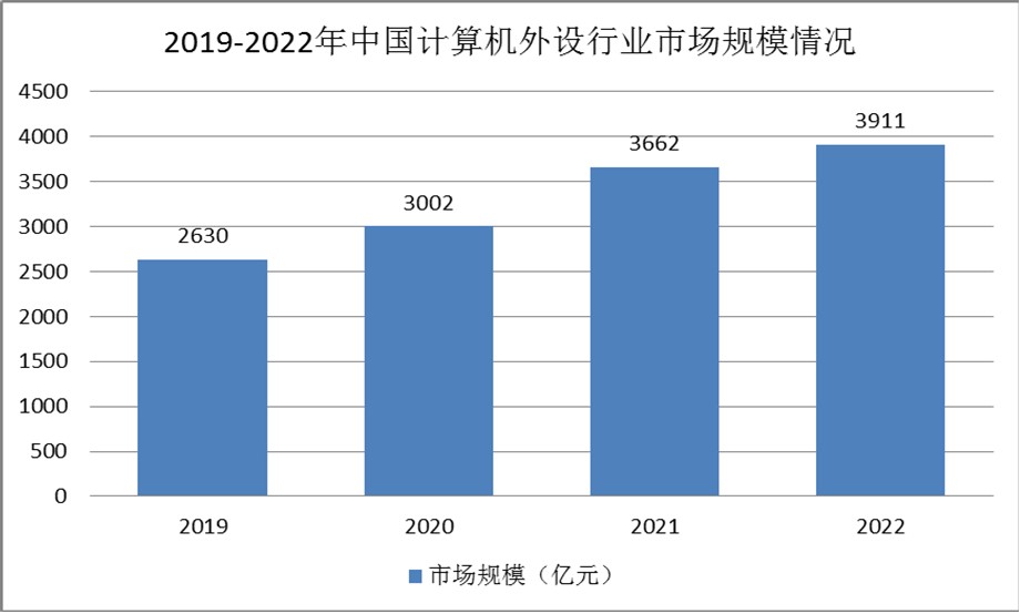 圖表:2019-2022年中國計算機外設行業市場規模情況