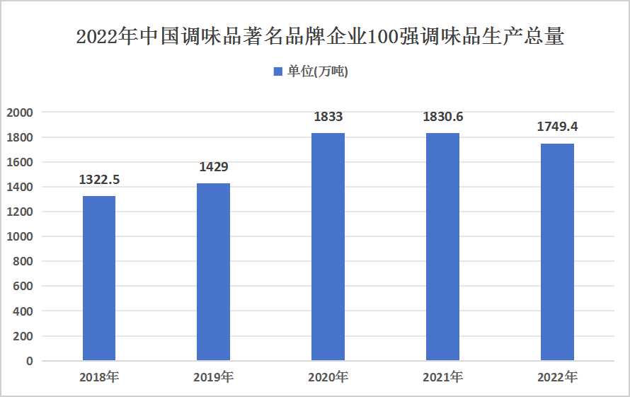 根據中國調味品協會發布的數據,2022年中國調味品著名品牌企業100強調味品生產總量為1749.4萬噸,同比下降1.5%;銷售收入為1363.8億元,同比增長6.9%。2022年,百強產量首次出現同比下降的情況,而產量與銷售收入的增速開始出現分化。