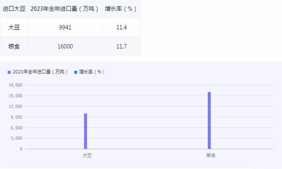 據海關總署統計,2023年我國進口糧食1.6億噸,同比增長11.7%。其中,全年大豆進口量為9941萬噸,比上年增長11.4%,占全部糧食進口六成以上。陳邦勛說,進口大豆主要滿足食用植物油消費和畜禽養殖飼用豆粕需求。在回應將采取什么措施減少飼用豆粕進口量的問題時,他表