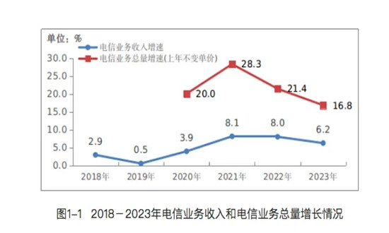 工信部最新發布的《2023年通信業統計公報》(下稱《公報》)顯示,2023年電信業務收入同比增長6.2%,電信業務總量同比增長16.8%,成為賦能經濟增長的一個重要支撐。