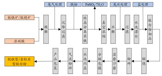 圖表:硫酸法鈦白粉工藝流程