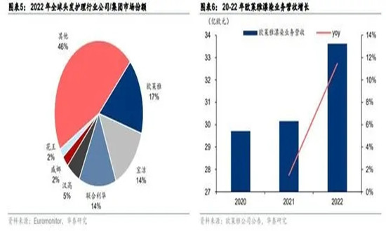 老牌染護品牌歐萊雅 20-22 年漂染業務持續增長,22 年營收達33.6 億歐元,yoy11.46%;22 年推出 Colorsonic“手持居家染發神器”,振蕩刷頭能將染發劑均勻地涂抹在頭發上,可避免染膏到處蹭碰,滿足消費者居家染發需求。施華蔻母公司漢高集團 22 年收購資生堂專業美發旗下的芯護理道(Sublimic)與普盈絲(Primience),合作建立的日系美學創新中心于 23 年 3 月在日本東京啟幕,聚焦日本和亞洲市場,有望開發更多個性化美發、染發產品。
