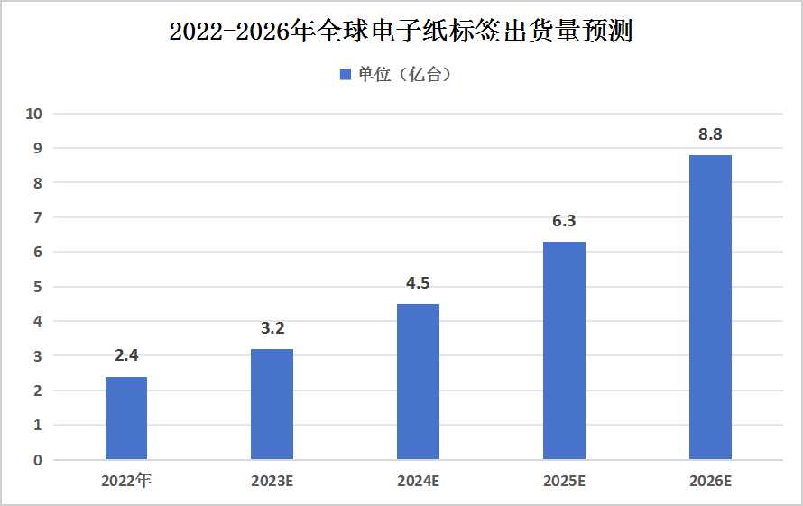 近年來,全球通信技術的突飛猛進為社會工作和生活的各個領域帶來了數字化需求的顯著提升。這一趨勢為電子紙終端提供了豐富的應用場景,使其成為當下科技界的焦點之一。據中研普華產業研究院發布的《2024-2028年電子紙行業市場深度分析及發展研究報告》顯示,數據顯示,2022年全球電子紙標簽的出貨量已達到了約2.4億臺,預計到2026年這一數字將攀升至8.8億臺。