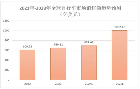 2022年全球自行車的市場銷售額為609.52億美元,2023年預計將達到649.31億美元,2022年至2028年的復合年增長率為7.0%。